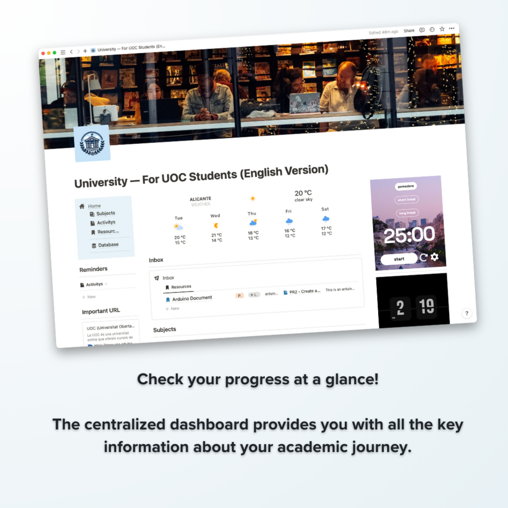Welcome to the Notion template designed especially for students of the Universitat Oberta de Catalunya (Spain), although adaptable to any other university with minimal adjustments!